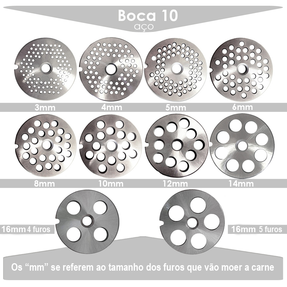 Disco Aço para Moedor de Carne Boca 10 - de 3mm a 16mm